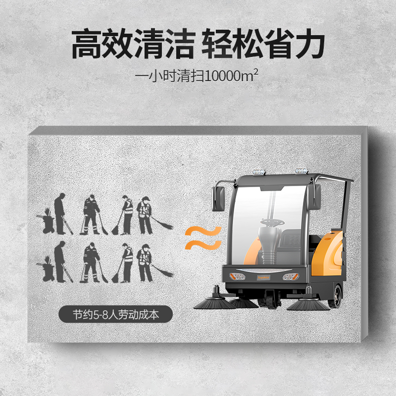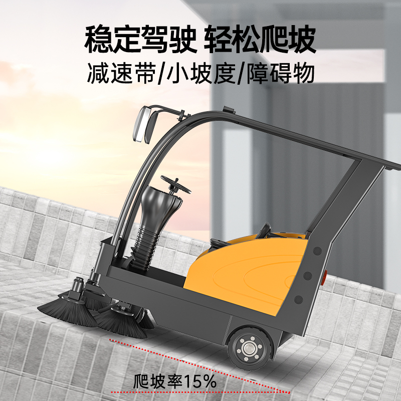 榮事達駕駛式清掃車RS-DS180:帶棚的駕駛掃地機,讓你清潔更加舒適,快速、高效、省時又省力,體積小且易于操作,使機器能夠輕松穿過大多數門口、過道和擁擠的空間。